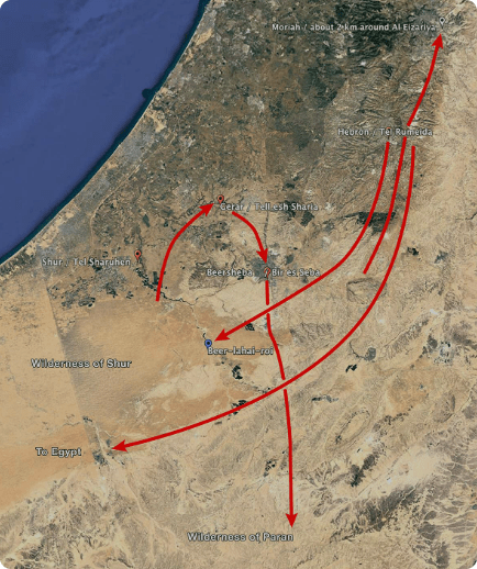 Genesis 20:1 (KJV), “And Abraham journeyed from thence toward the south country, and dwelled between Kadesh and Shur, and sojourned in Gerar.”